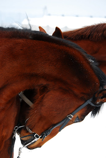 Ja w końcu się wyleczyłam i wybrałam się w sobote na chwilke w odwiedziny do konia. Idąc do stajni minełam wujasa, który akurat jechał po ludzi na kulig że też chce się tym ludziom kuligów przy -18 brrr Przychodze sobie do stajni a tu niespodzianka nasza poniaczka się oźrebiła ma ślicznego tarantowatego ogierka. Poszłąm do koni na padok a tam moja Ruda jak mnie tylko zobaczyła z aparatem dzikie galopady odstawiała. Zmarzłam przeraźliwie i po 30 min zwiałam zagrzać się do siodlarni i do domu. U nas w stajni tym razem poidła nie zamarzły a to aż dziwne bo w nocy było - 27 No to teraz kilka foteczek.