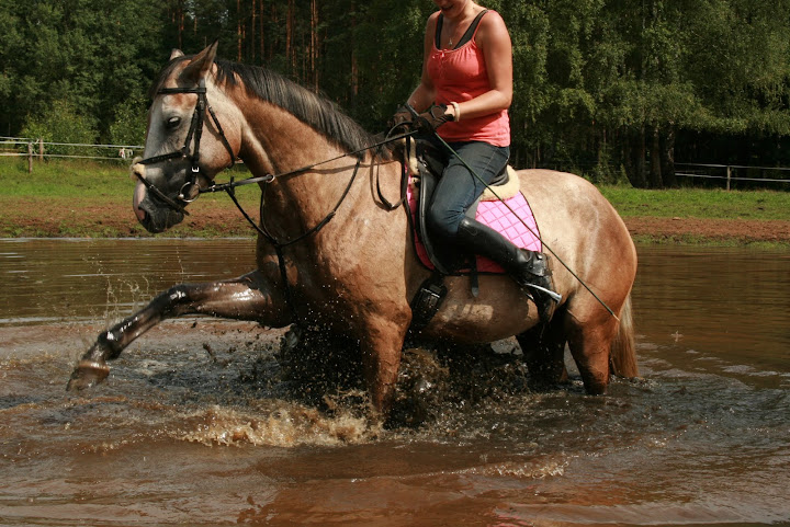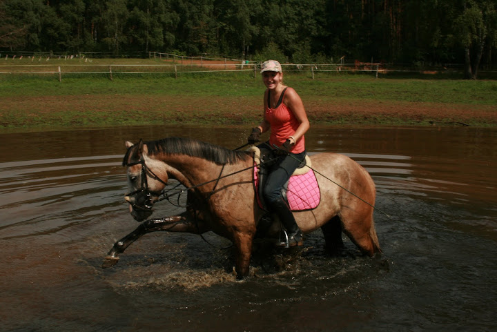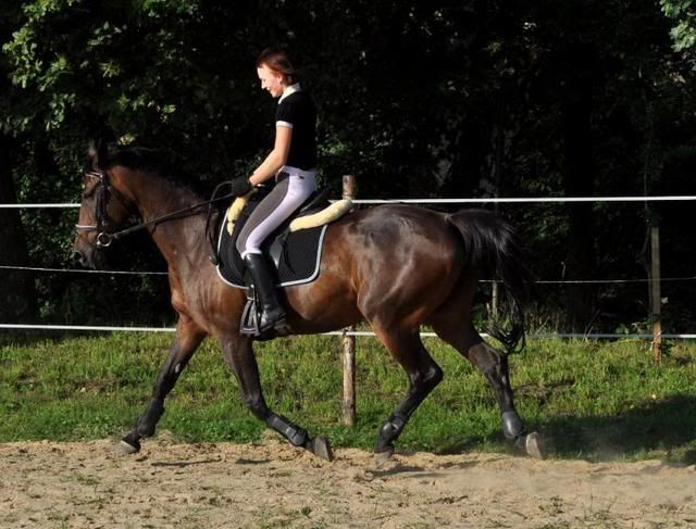wendetta, historia jest krótka, nie pamiętam czy w jednym miejscu opisałam ją na forum, we fragmentach przewijała się na pewno. Kasz nie ma udokumentowanego pochodzenia, nie wiem ile ma dokładnie lat. Oceniając po zębach najprawdopodobniej ma nie mniej niż 15, ale nie więcej niż 20 lat. Biorąc pod uwagę jego historię, to pewnie bliżej mu do tej 20 niż 15 (obstawiam na jakieś 17-18 lat aktualnie). Trafił w moje ręce poprzez dzierżawę - ok. roku jeździłam na nim jako koniu szkółkowym, prawie równe 3 lata temu zaczęłam go dzierżawić. I tak sobie jeździmy razem te trzy lata w przerwach pomiędzy jego kulawiznami 🙂
