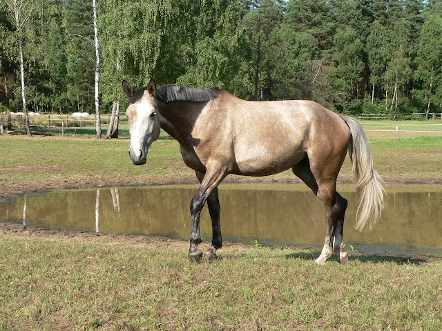 No i..zwróć uwagę na jej nogi!!!!! Masakra..jak można takiego konia męczyć pod siodłem??? Kup sobie innego , a tego pozostaw w spokoju... Ubolewam nad takimi jeźdźcami.Z jednej strony troszczą się o zdrowie a z drugiej kładą się kobyle na plecy, męczą chore...łopatki i dziwia sie ,ze siodło gówniane..! Trakenka....mniej litość!!!!!!