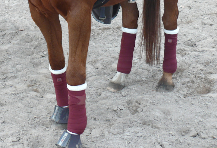 Co do tego owijania z wiatrem - to raz, że rzep może się "rozpiąć", gdy jest słaby, słabo przyczepiony, a do tego jeszcze np. koń o coś zahaczy/obetrze (co kiedyś widziałam), a dwa podkładki zakładamy w ten sam sposób- "z wiatrem" (patrząc po zewnętrznej stronie). I zawsze układając początek podkładki w zagłębieniu na ścięgnach i do tyłu, dalej na około. Jeśli mamy podkładki bez rzepów, można kawałek owijki podłożyć pod ostatnią warstwę podkładki ( to sprawi, że owija będzie się dobrze trzymać podkładki nawet gdy nie zrobimy tej trójkątnej zakładki).