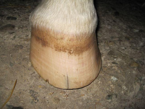 Czyli z przodu? To trzeba by podpiłować, teraz kopyta rosną jak szalone i możliwe, że po prostu macie przerośnięty pazur i stąd to pęknięcie. W każdym razie nie panikuj, jeśli Twój kowal jest mądry i się zna na kopytach to spokojnie wyprowadzi to pęknięcie. Jeżeli pęknięcie będzie rosło to zasugeruj mu mocniejsze podpiłowanie pazura w tym miejscu.