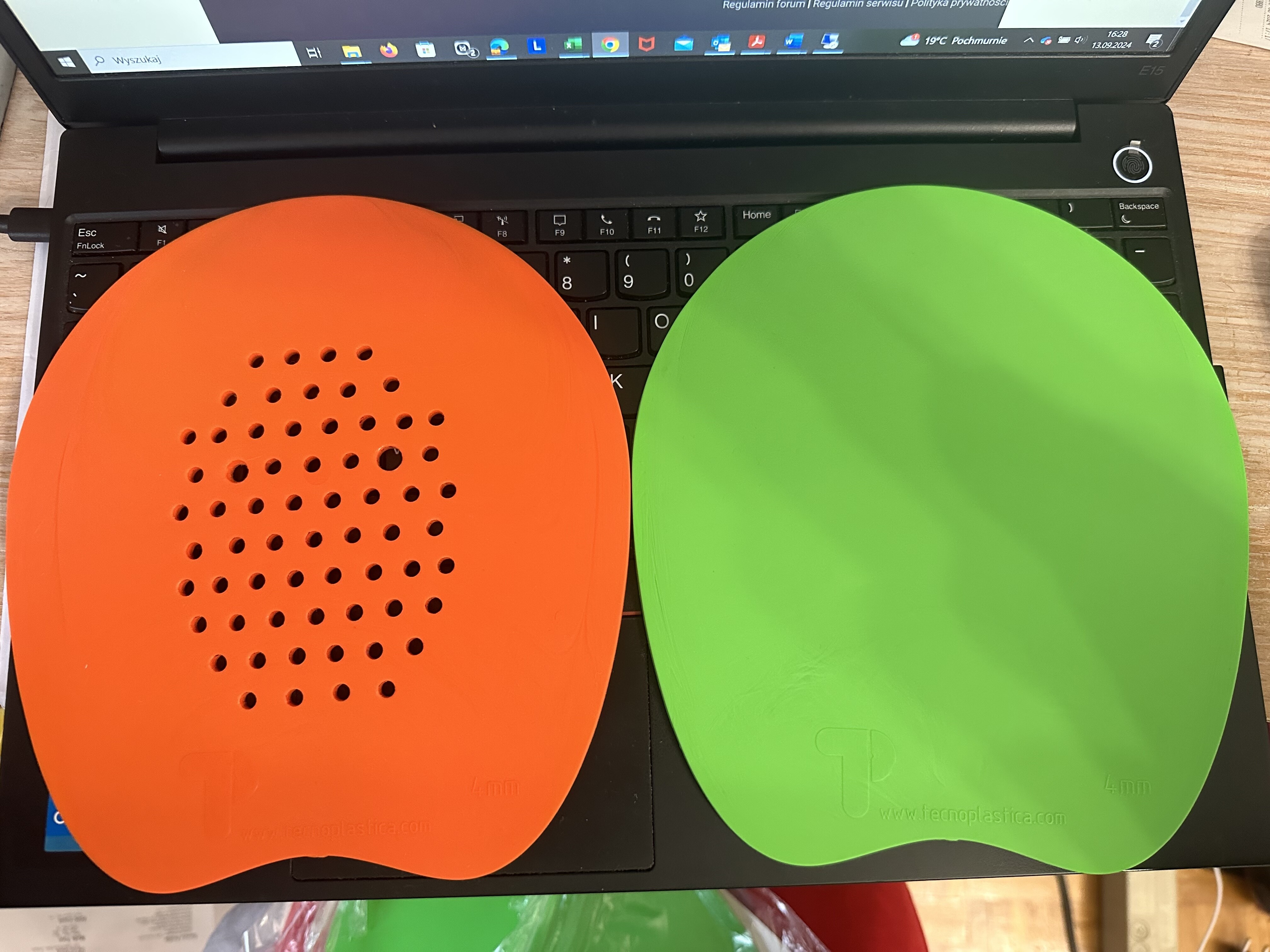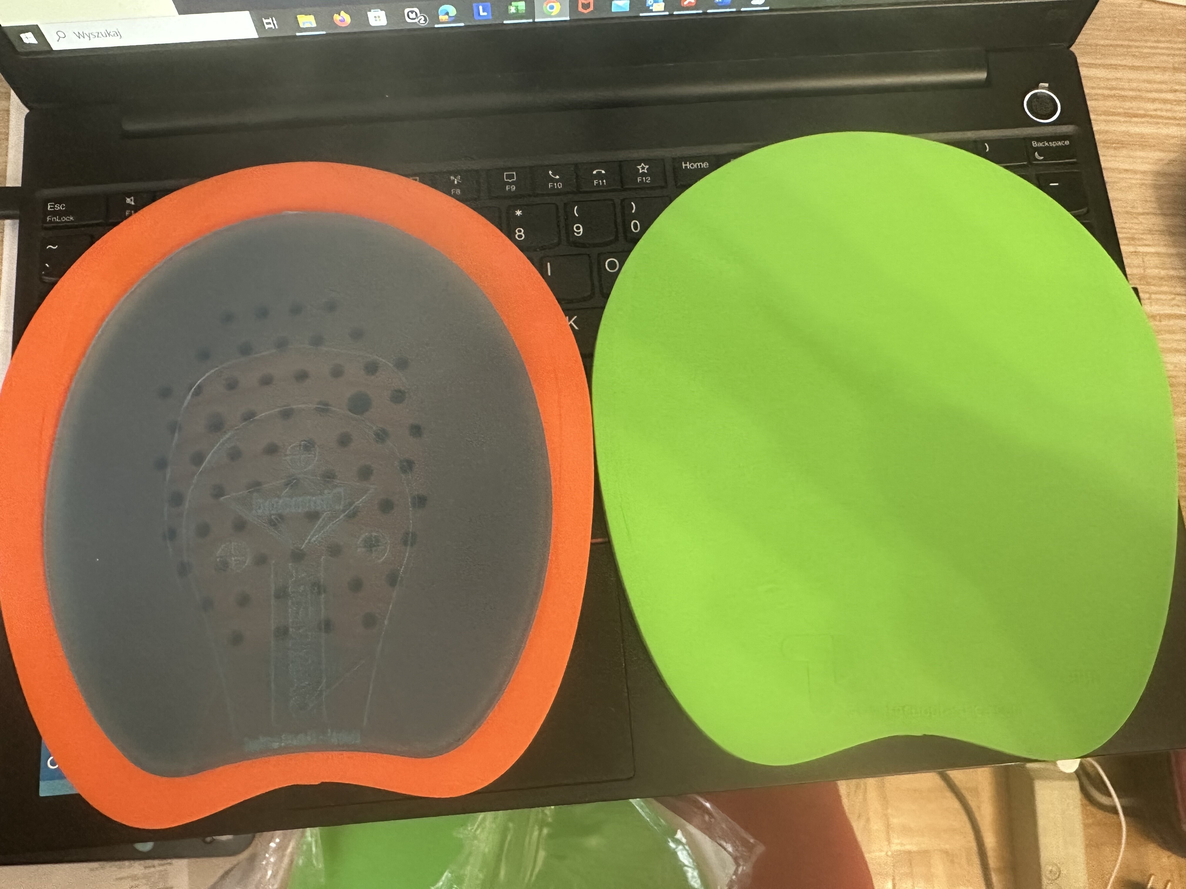 Jeszcze w ramach ciekawostki pokażę Wam podkładki - leżą na klawiaturze laptopa. Na drugim zdjęciu ta niebieska wkładka leżąca na pomarańczowej to rozmiar 6 - za mała na Argo 😝