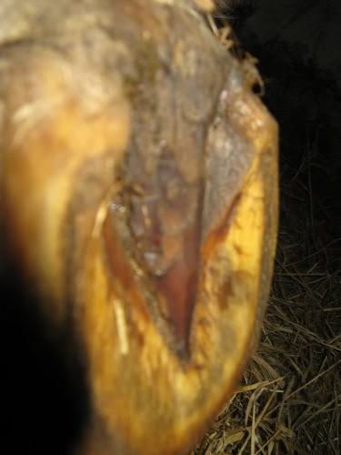 Jeśli chcesz poprawic stan kopyt, upewnij się, że koń ma w żarciu to czego mu potrzeba (głównie chodzi o minerały w odpowiednich proporcjach, nie o biotynę) i że kopyta są odpowiednio zbalansowane (mają poprawny kształt i pracują zgodnie z tym, do czego były zaprojektowane - jeśli jest inaczej, to pękają), czy ściana kopyta przylega dobrze do kosci w przedniej części kopyta (czy nie jest powyginana, pofalowana, czy nie widać zmiany kąta, sugerującej oderwanie w dolnej części, czy nie ma "za dużo kopyta przed strzałką"😉 - jak jest oderwana ściana, to czesto towarzyszy temu zmatowienie, drobniutkie pęknięcia, na które ludzie mówią "przesuszenie", a to po prostu brak odżywienia, bo "paznokieć" jest za daleko od "palca", żeby krew do niego z jedzonkiem docierała. Czasami nawet w kolorze rogu to widać (nasyceniu koloru). Zdjęcie mojego bydlęcia - widać od góry zrastające kopyto z intensywniejszą barwą (nigdy niczym nie smarowane):