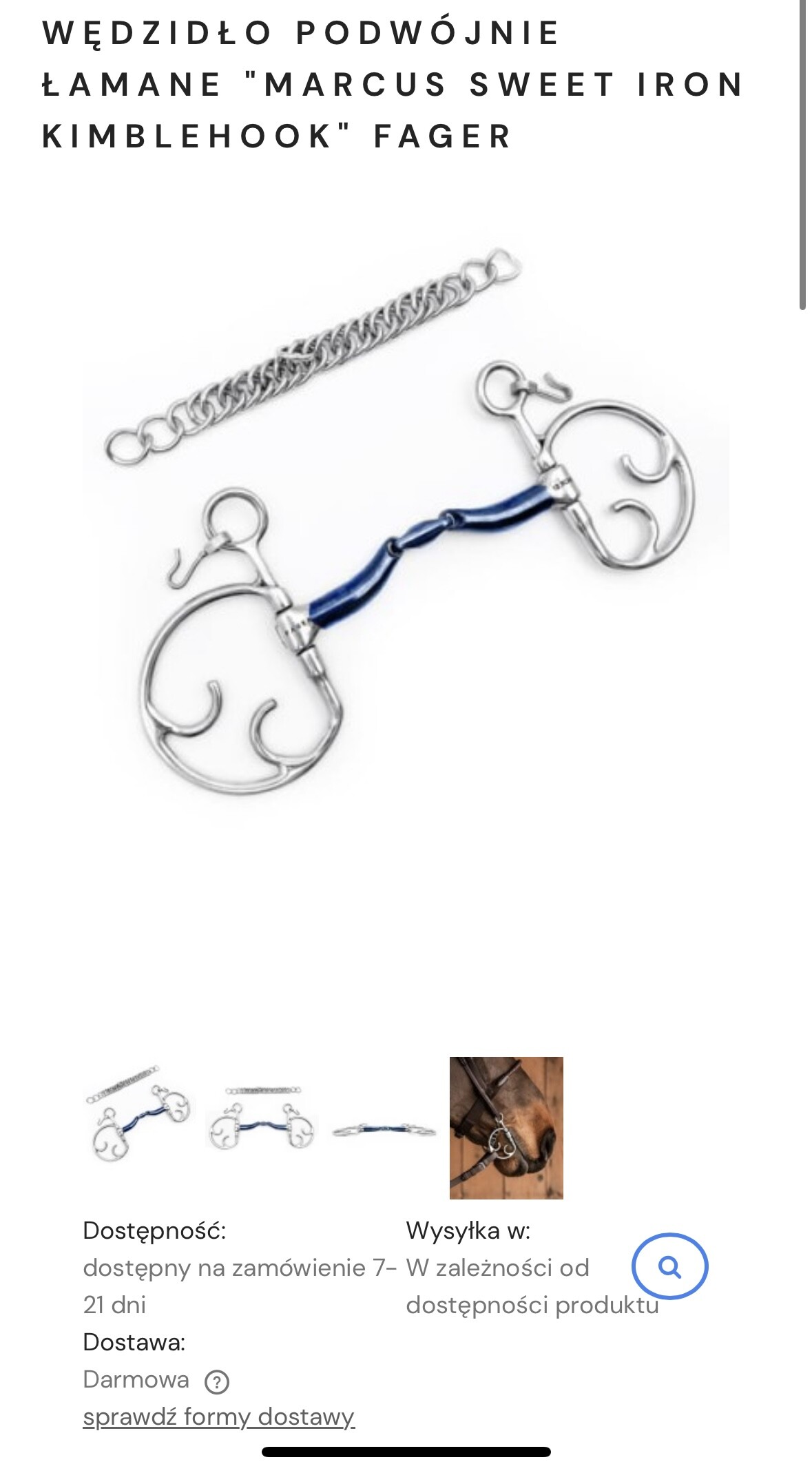 saganek, ja lubię te z fagera mimo ceny bo mają dosc cienki ścięgierz, ale to rzeczywiście trochę alla oliwka(bardziej w sumie alla D-ring) jeśli chodzi o boki. Mimo wszystko tu działa dźwignia więc może nie będzie efektu stępienia. Niestety tu będzie nieruchomy „pierścień”niezależnie od firmy, więc jeśli to się nie sprawdza u Was to rzeczywiście niekoniecznie może być idealna opcja, ale fagery można brać na testy (w GNL czy fitmyhorse) więc ewentualnie można sobie sprawdzić i zwrócić, zawsze większość kasy wróci do portfela. Wstawiam fotkę podwójnie łamanych, ja mam ten z rolką. 🙂 Ostatecznie w sumie wielokrążek ale z założonym łańcuszkiem żeby zniwelować efekt gagu 🤔 ale to już ktoś mądrzejszy musiałby się wypowiedzieć 😅