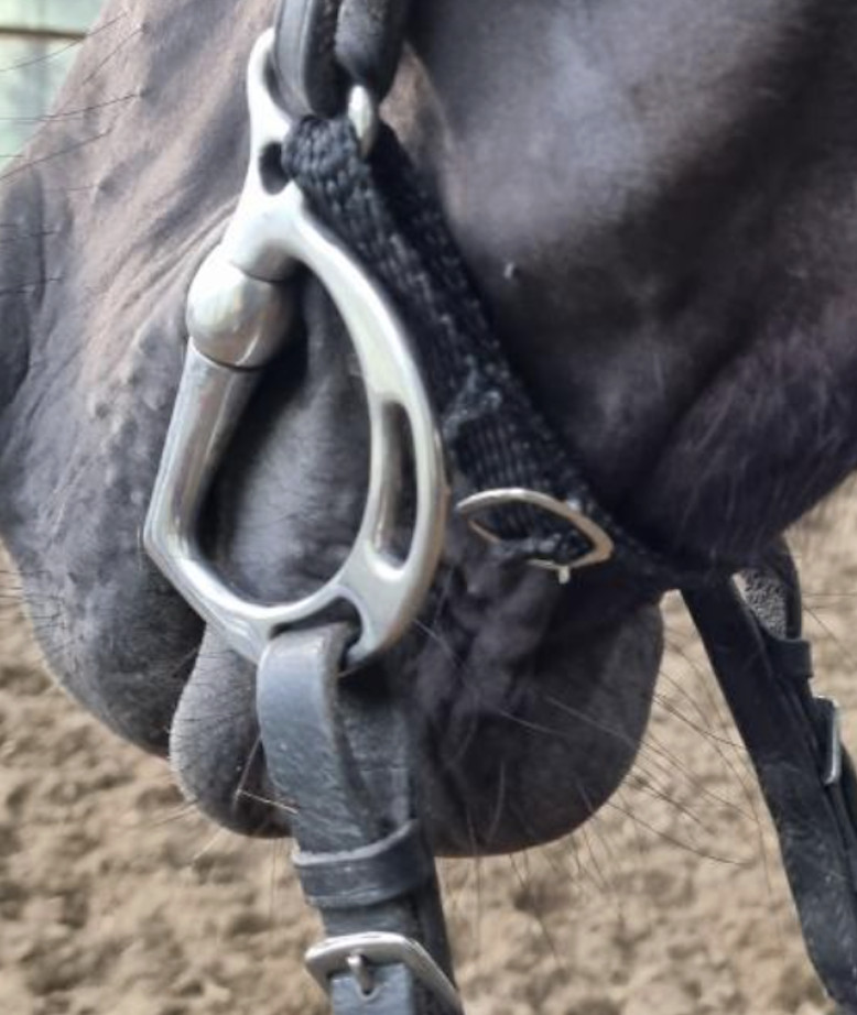Dźwignia nie jest duża ale jest i przy takim podpieciu jest mocno odczuwalna dla konia - dźwignia jest właśnie wtedy, gdy wodze są podpięte do dolnego oczka, bo taki zamysł ma to wędzidło i te cholerne oczka 😅 albo masz przełożenie na wędzidło (górne oczko), albo lekką dźwignię (dolne oczko), której działanie