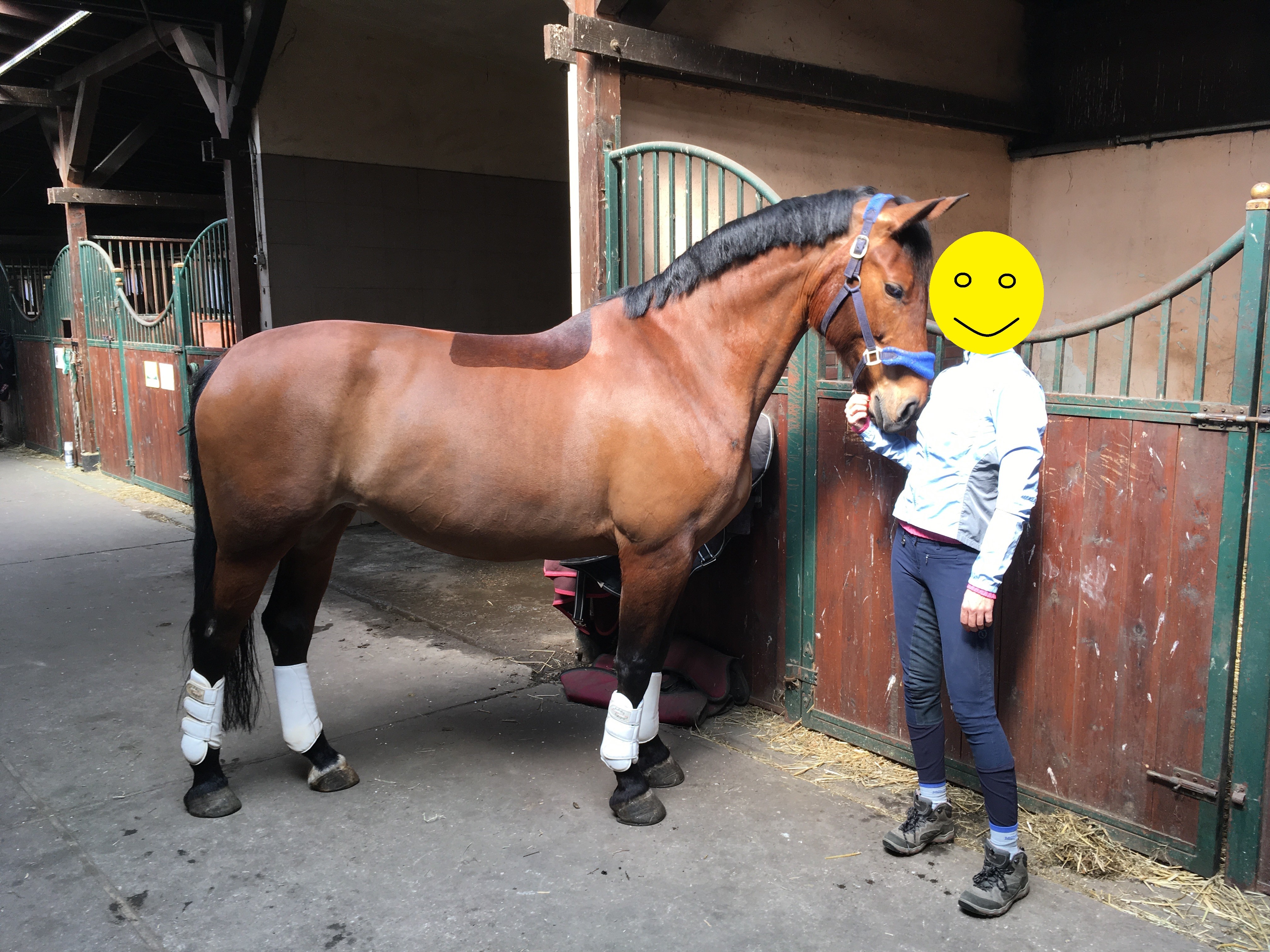 Jeszcze jedno mam spostrzeżenie. U nas koń wyglądał jak pełnowymiarowe konisko jak był w formie i podkasany - wtedy nogi były dłuuugie i koń wizualnie dużo wyższy się wydawał. Teraz jesteśmy Dr Jekyll and Mr Boczek i wydaje mi się, że w niektórych perspektywach wychodzę jak na masywnym kucu. Na szczęście ogolenie zrobiło niezłą robotę.