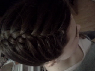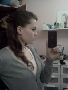 Wpleciony warkocz dobierany idący od przodu z lewej strony do tyłu głowy i tam upięty. Reszta długich włosów puszczona i pokręcona. Baardzo elegancka i jak zwykle w 10 minut wymyślona przez moją ukochaną fryzjerkę. Mam nadzieję, że na zdjęciach będzie dobrze widoczna to wrzucę 😉