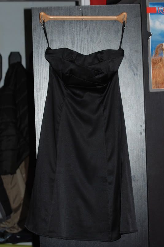 To jest moja 100dniówkowa sukienka (w rzeczywistości trochę ciemniejsza- jeszcze muszę zrobić coś z tą kokardą, bo wydaje mi się, że wygląda trochę tandetnie, a ja chciałam mieć prostą sukienkę- w ogóle to miała być "mała czarna", no ale już pal licho z tym 😉 ), przed kolano. Chwilowo nie mam możliwości zrobienia zdjęć na sobie 😉