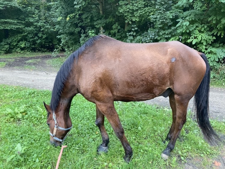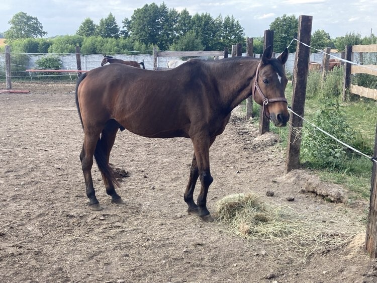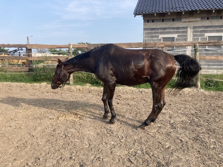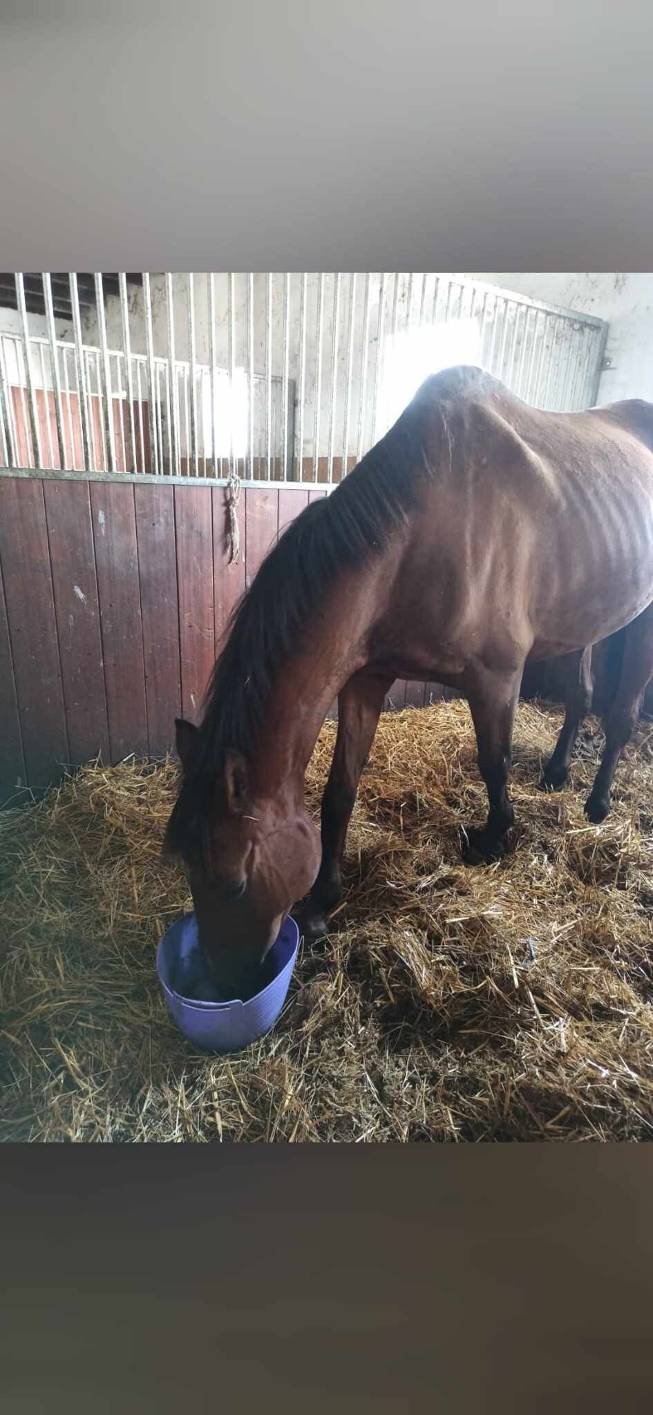Konie nie karmione zgodnie z zaleceniami właścicieli. Pasza ale tylko dobrej firmy musli znika jak szalona, przywoziłam mebio build up, przyjeżdżałam praktycznie codziennie dać drugi posiłek trawokulki razem z witaminami, elektrolitami i suplami na stawy, koń co jakiś czas z żebrami na wierzchu, raz chudy raz chudszy. W kwietniu wyglądał już tragicznie (kwiecień), a ja przestałam przywozić pasze do stajni, przyjeżdżałam codziennie, na weekendy dwa razy dziennie (o ile było to w ogóle możliwe) żeby sama go karmić: zdj2 - maj., zdj3 czerwiec. Przed moją dłuższą nieobecnością w stajni przywiozłam ok 22-24.06.23r. granulat o czym poinformowałam właścicieli, że zostawiam do skarmienia pod moją nieobecność "granulat z allegro", w rzeczywistości był to Krauter pellet ale przesypany do innego worka, dokładnie 15kg, a dokładnie 12kg zabrałam ze stajni 15.08.23r. to przepraszam co jadł przez ten czas? powietrze? zdj lipiec. tą kępkę sianka to ja mu wrzuciłam bo na padoku oczywiście nie było nic.. Oczywiście zapytałam o to .. odp: Daje mu mniej bo jest za gruby. Mniej niż nic? to da się tak? Zdj. obecnie marzec24