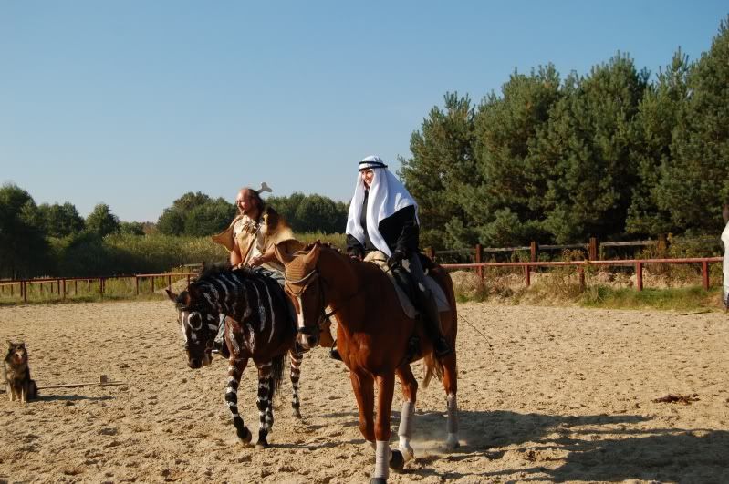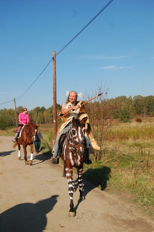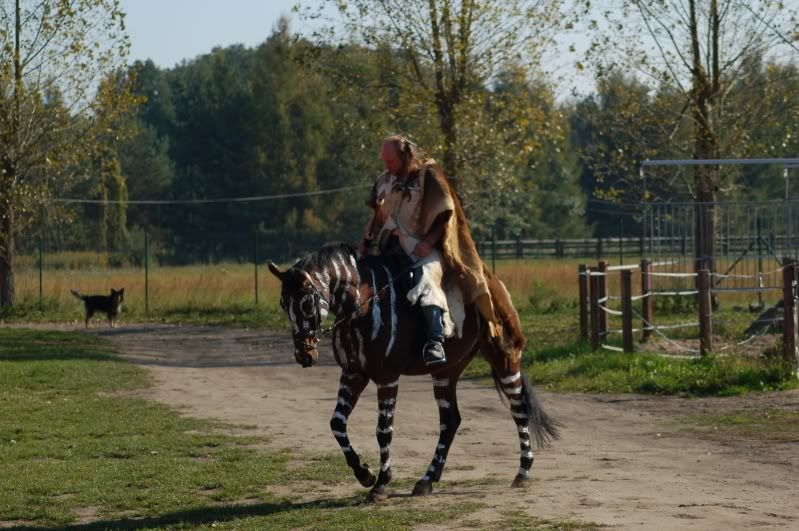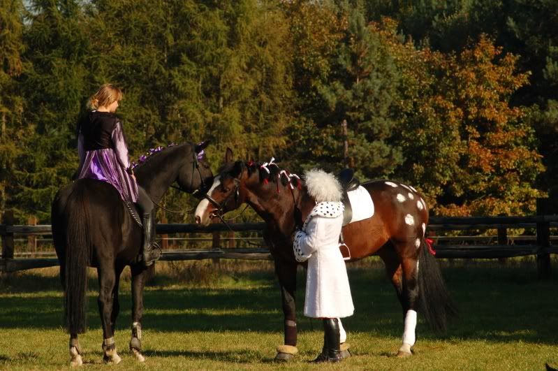 O ile pamiętam - glinką jakąś. Potem zostało szybko doczyszczone 😉. Strój tego jeźdźca to był chyba najszybciej konstruowane przebranie - z rzeczy będących "pod ręką" 😉