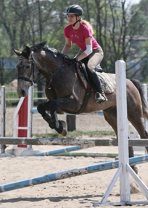choć to nie wątek służący do komentowania zdjęc, powiem szczerze, że wyglądasz na bardzo spiętą i sztywną. nie wiem czemu wydaje mi się, że jesteś trochę jakby za nisko nad siodłem - że się kulisz w skoku.