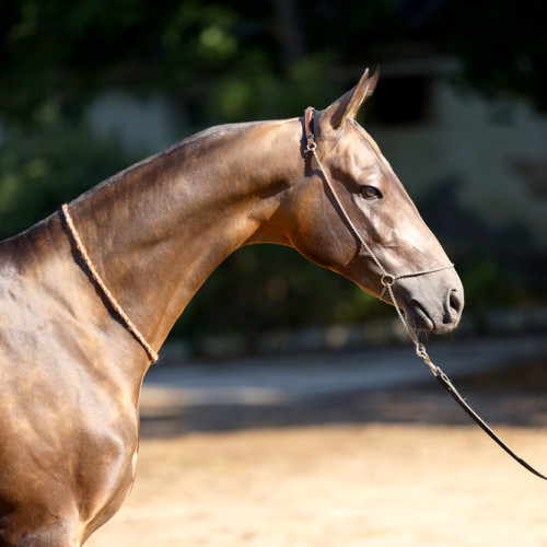 Na pierwszym zdjęciu wygląda jakby miał czyjś podpis na szyji. Na stronie nie znalazłam tego zjęcia, jak została opisana ta maść? Kasztanowatosrokaty? Pamiętam, że któraś z Voltowiczek miała chyba gniadego hucuła z jedną białą plamą pod siodłem i był opisany jako gniadosrokaty.