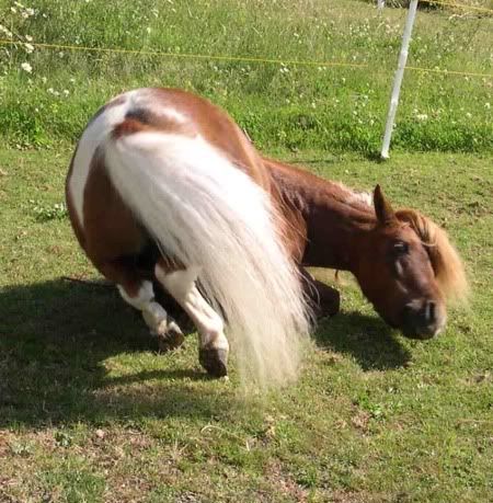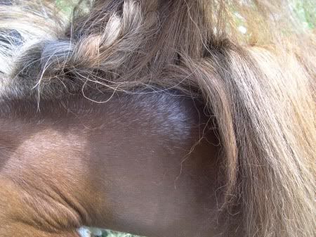 z tymi siwymi włosami, ale widać plamę tobiano na grzbiecie. tobiano takie mają "zacienione" łaty, widać jakby w tym miejscu była biała plama i ktoś ja zamalował ale nie do końca🙂: