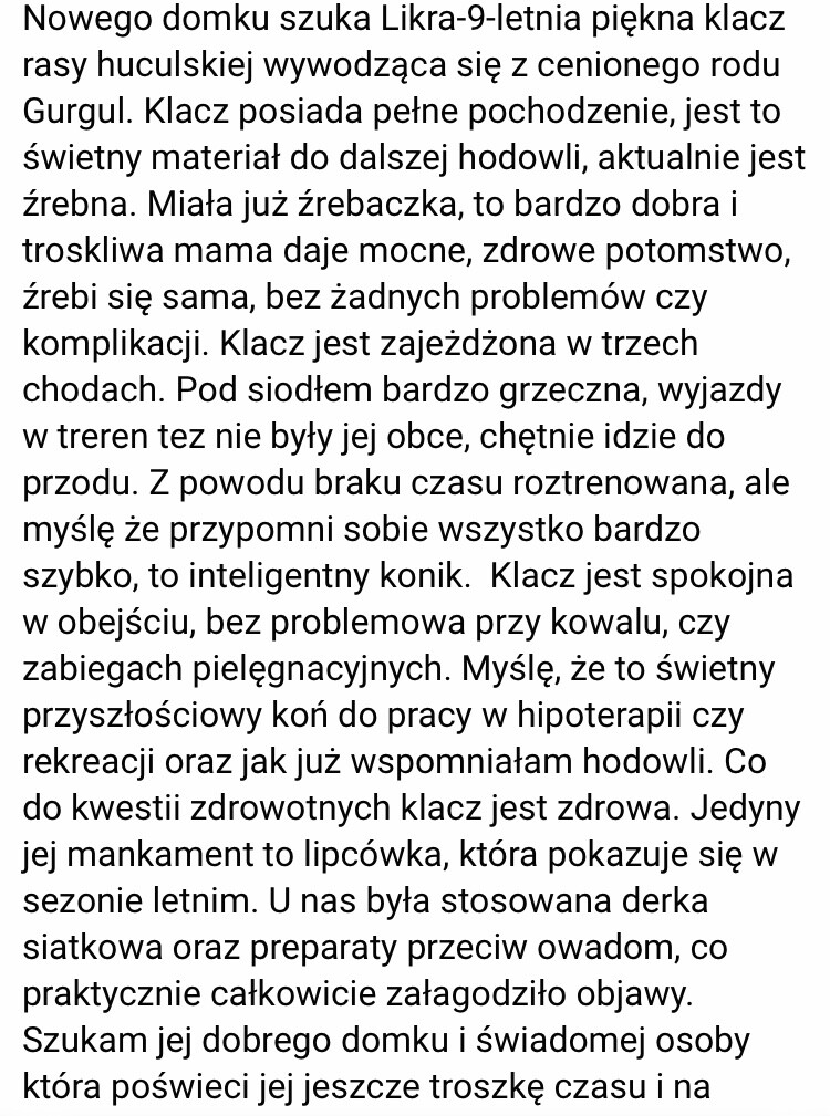 Siwka z ogłoszenia jest po prostu brzydka, wielka i źle zbudowana, ale nie wygląda na zaniedbaną.