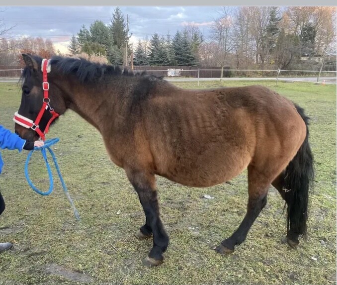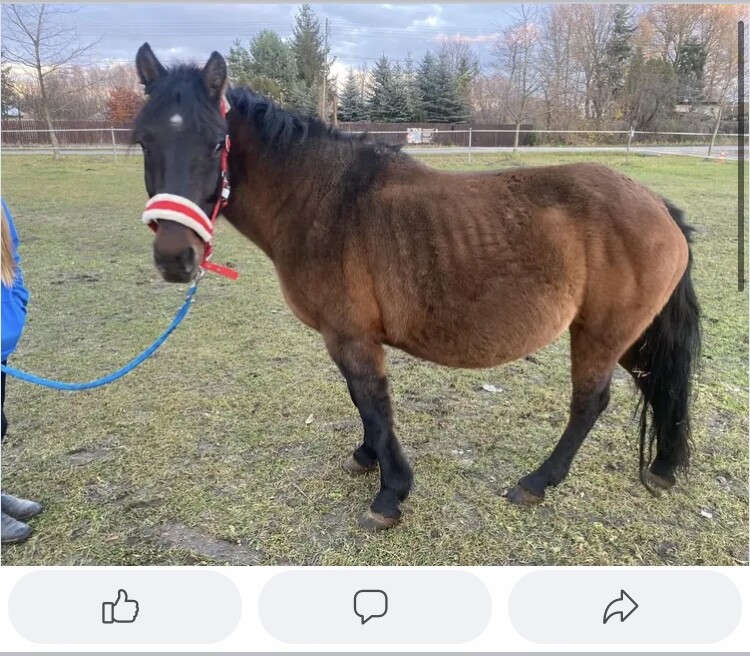 Tez jestem zdania że ten koń wygląda źle, czy dlatego że właśnie szybko urósł, czy dlatego, że ktoś żywienie zaniedbał, to się nie dowiemy. Szyja jest okropna, biodra sterczą. Żeber się nie czepiam bo w tym wieku mogą być widoczne, ale mięska nie ma wcale na niej. Kopyta w koszmarnym stanie, co potęguje miękkość tych pęcin. Możliwe, że gdyby kopyta były ok, nie wyglądałoby to tak źle.