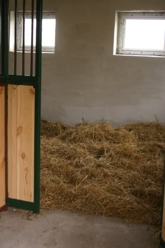 Stajnia zaadoptowana z kórnika. Na piętrze magazyn siana i owsa (słoma była trzymana w innym budynku) Na dole 3 boksy. Myjka zewnetrzna, padok piaszczysty i ok 1 ha pastwisk.