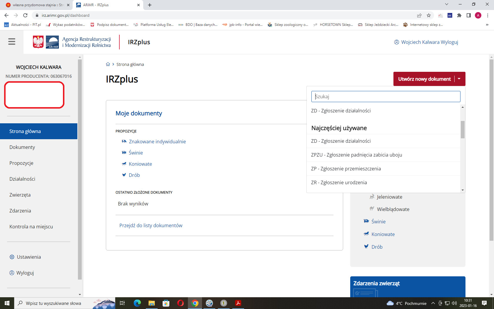 Edit. Mając numer producenta można z aplikacji złożyć wniosek o siedzibę stada i to chciałam zrobić tylko nie idzie.