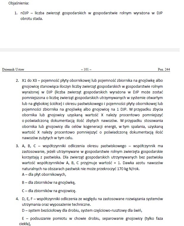 randia, dodam jeszcze raz, chodzi mi o zaznaczony fragment, tam jest "jak również" czyli ja (i nie tylko ja) to rozumiem tak, że musi być zbiornik na nawóz płynny i miejsce na stały. Może to być razem jako płyta obornikową ze zbiornikiem, albo może być osobno (jeśli np. zwierzęta są trzymane na głębokiej ściółce). Wtedy przy stajni/oborze zbiornik, a miejsce na obornik gdzie indziej.