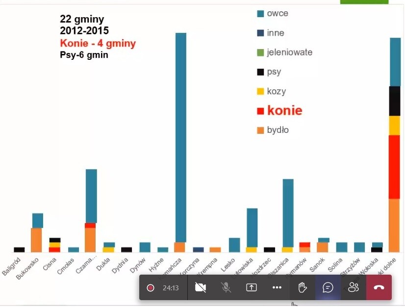 Gillian, był ostatnio webinar "Konie i wilki" z jednej strony uspokajali, że wilki wolą mniejszą zwierzynę itp ale jednak statystycznie ataków na konie przybywa. To co mnie nieprzyjemnie zaskoczyło to ataki wilków na psy, zwyczajnie je zjadają...