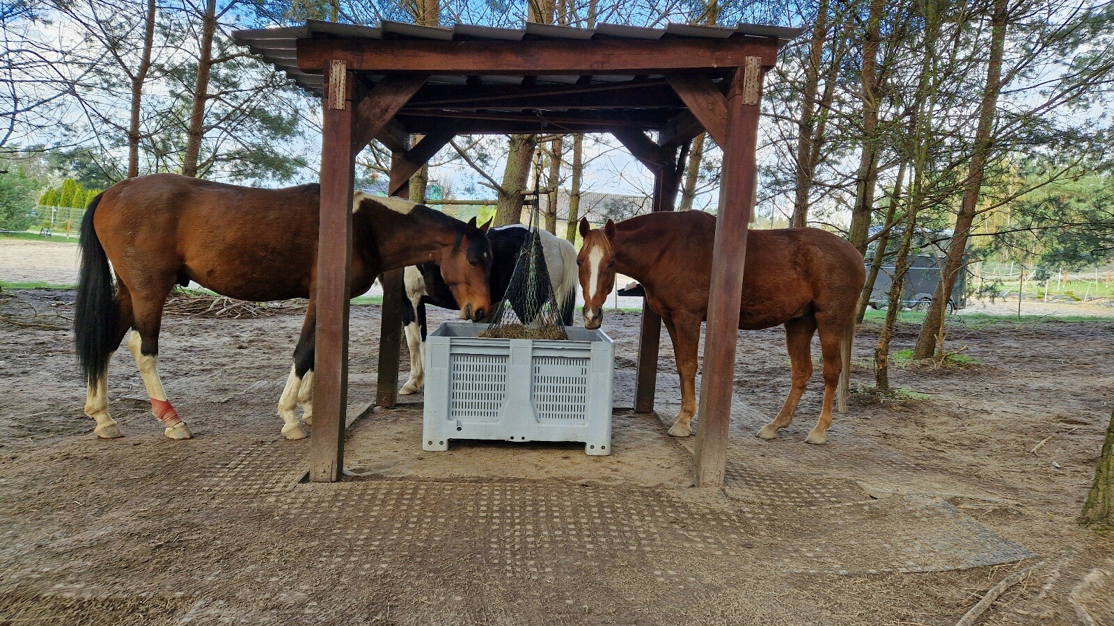 Przychodzę z polecajką. Kupiłam ostatnio ażurowe skrzyniopalety plastikowe. W celu zmniejszenia strat pod paśnikami. Bardzo fajnie się sprawdzają! Moje chłopaki, jak sianokiszonka leży na ziemi, to już tak nie bardzo ją wyjadają. Jak dotknęło podłoża to już trujące jest. Do tego potem po tym podepczą, Gówniarzyk nasika i już totalnie się nie nadaje to do konsumpcji według nich. A teraz, jak to co z siatek wypadnie ląduje w znacznej większości w skrzyni to nadal jest pycha 😉 Wyjadają ładnie do końca siatkę i potem to co leży luzem. Także polecam! Fajna sprawa. Nowe są cholernie drogie, ale używane można kupić znacznie taniej. Mi się udało niedaleko znaleźć po 200 zł za sztukę 🙂