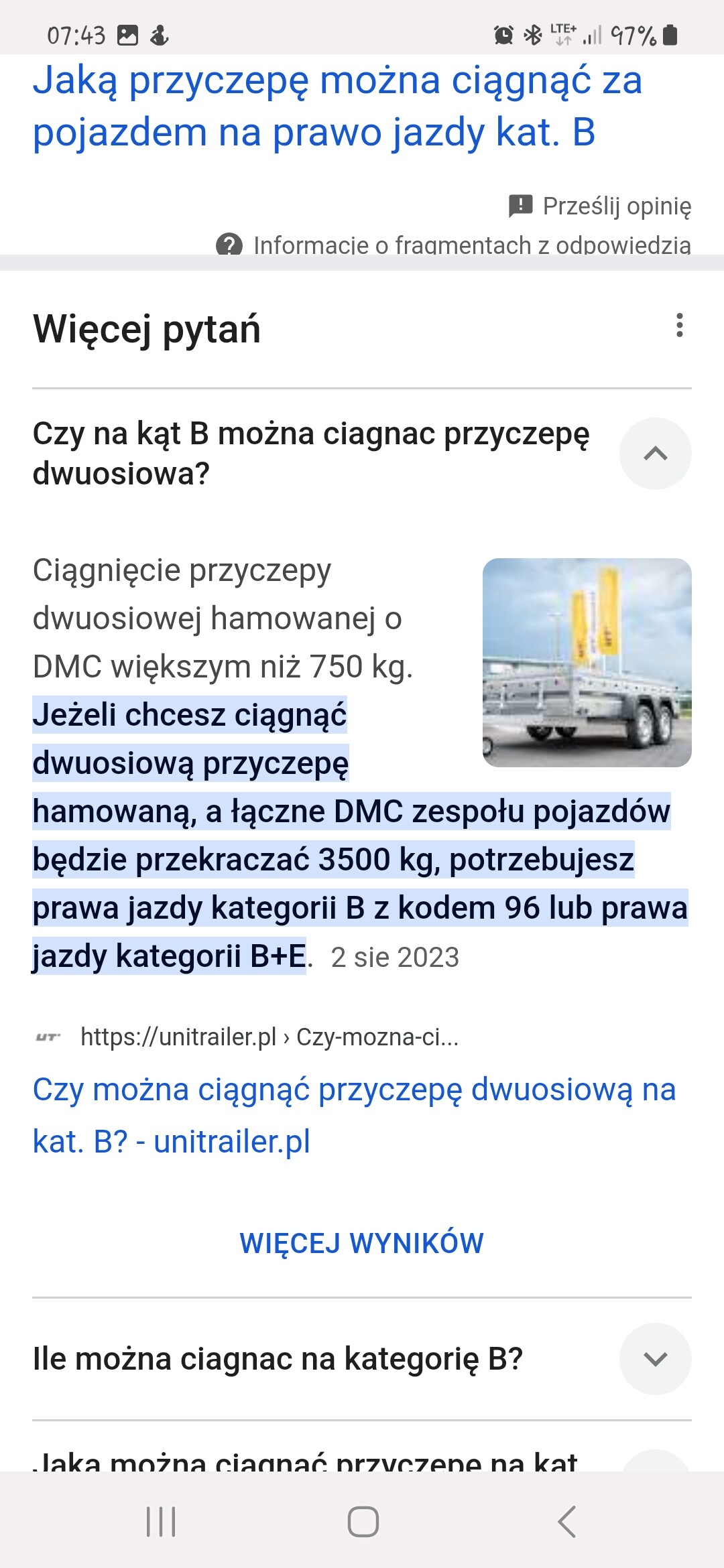 Jak to jest z przyczepą i prawo jazdy na kategorię B? Można w końcu czy nie można. Mój zestaw nie przekracza 3,5t. W dowodzie na haku 1400kg.