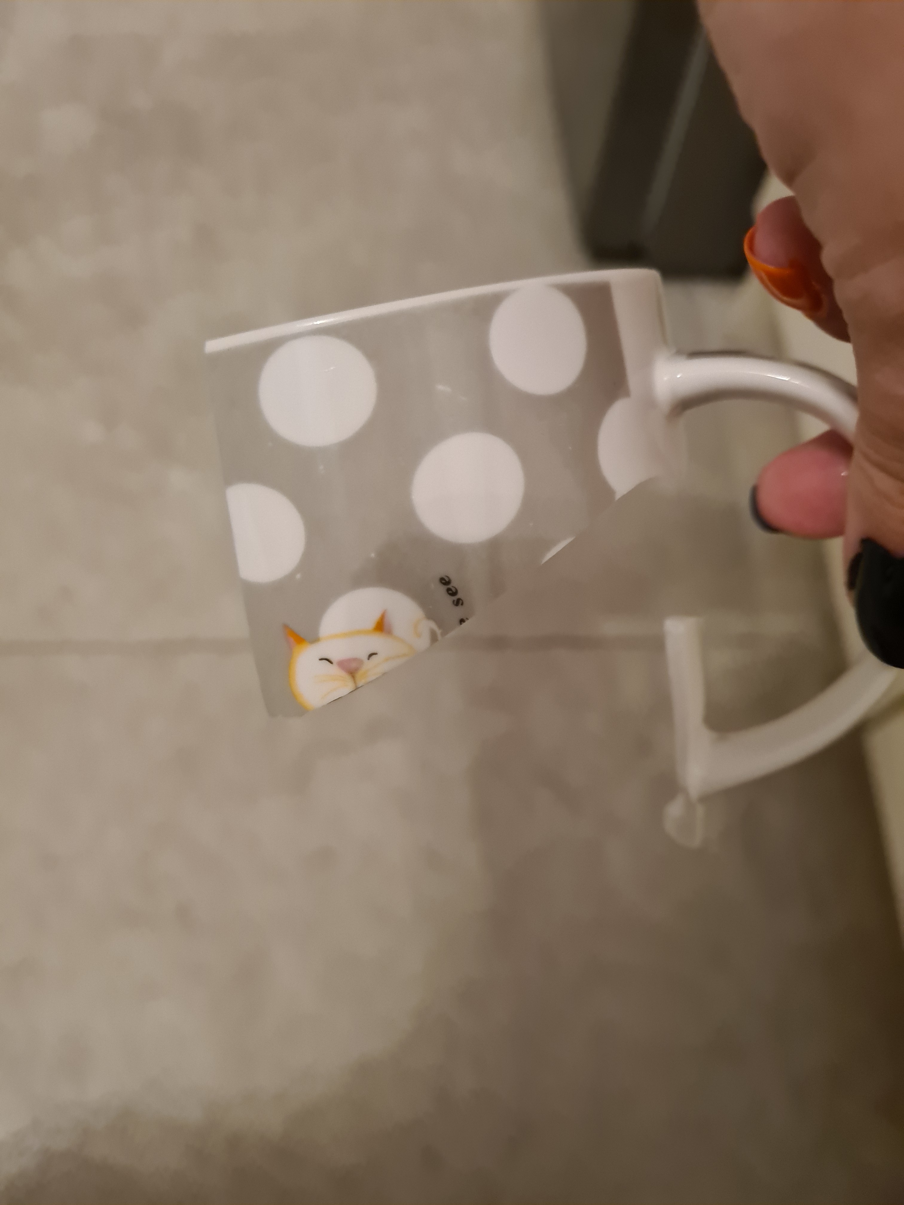 Poległ mój ulubiony kubek - szary w kropki, z dwoma kotkami. Jeśli ktoś ma taki w swojej kolekcji i nie używa chętnie odkupię, jak widział gdzieś to ozłocę za namiary. Żałoba w ciul, miałam go z 10 lat 😭
