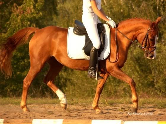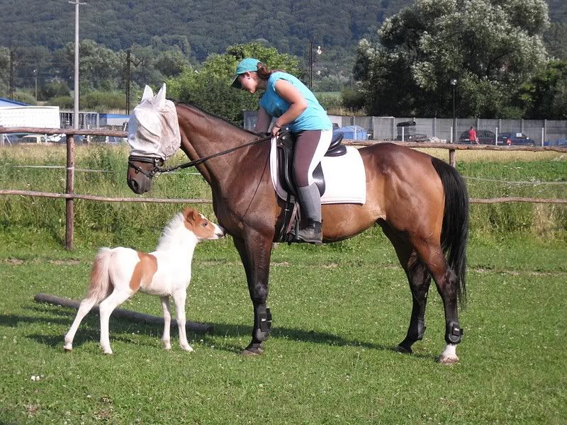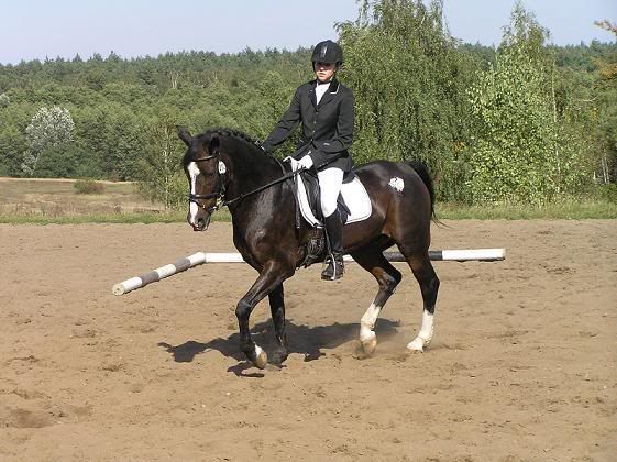 A tu dzisiejszy Całek, są jakieś zdjęcia w miarę z boku, może któreś Ci podpasuje. Ogółem ma wielki kloc zamiast łba, krótką szyjkę, ale bardzo ładnie się rusza chłopak i skoczny, że ło la boga. To ogrodzenie, do którego jest przywiązany pokonał dziś konkursowo, uciekając przed Lampasem. Inne skakał tak od po prostu. 🙂