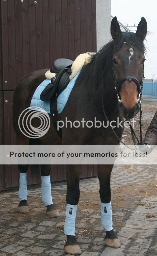 Monny nie denerwuj się, Burza dobrze radzi. Bowiem takie zawinięcie owijek jest błędnym założeniem sprzętu, które może nie tylko utrudnić prawidłową pracę, ale spowodowac problemy u konia. I widząc to, powinnaś zawinąć je jeszcze raz, prawidłowo. Jak się widzi, że koń ma źle założone siodło, poprawia się je. Tak samo winno być z ochraniaczami, wędzidłem itd. Dlatego na przyszłość zwracaj na to uwagę 🙂