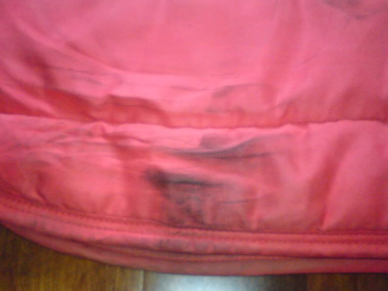 edit: wrzucam fotki z dzisiejszego prania, właśnie z dodatkiem Cloroxa. Najpierw wtarłam w plamy, zostawiłam na ok. 5 minut i potem dodałam dodatkowo do proszku i wyprałam w pralce w 30 stopniach. Oto efekty: