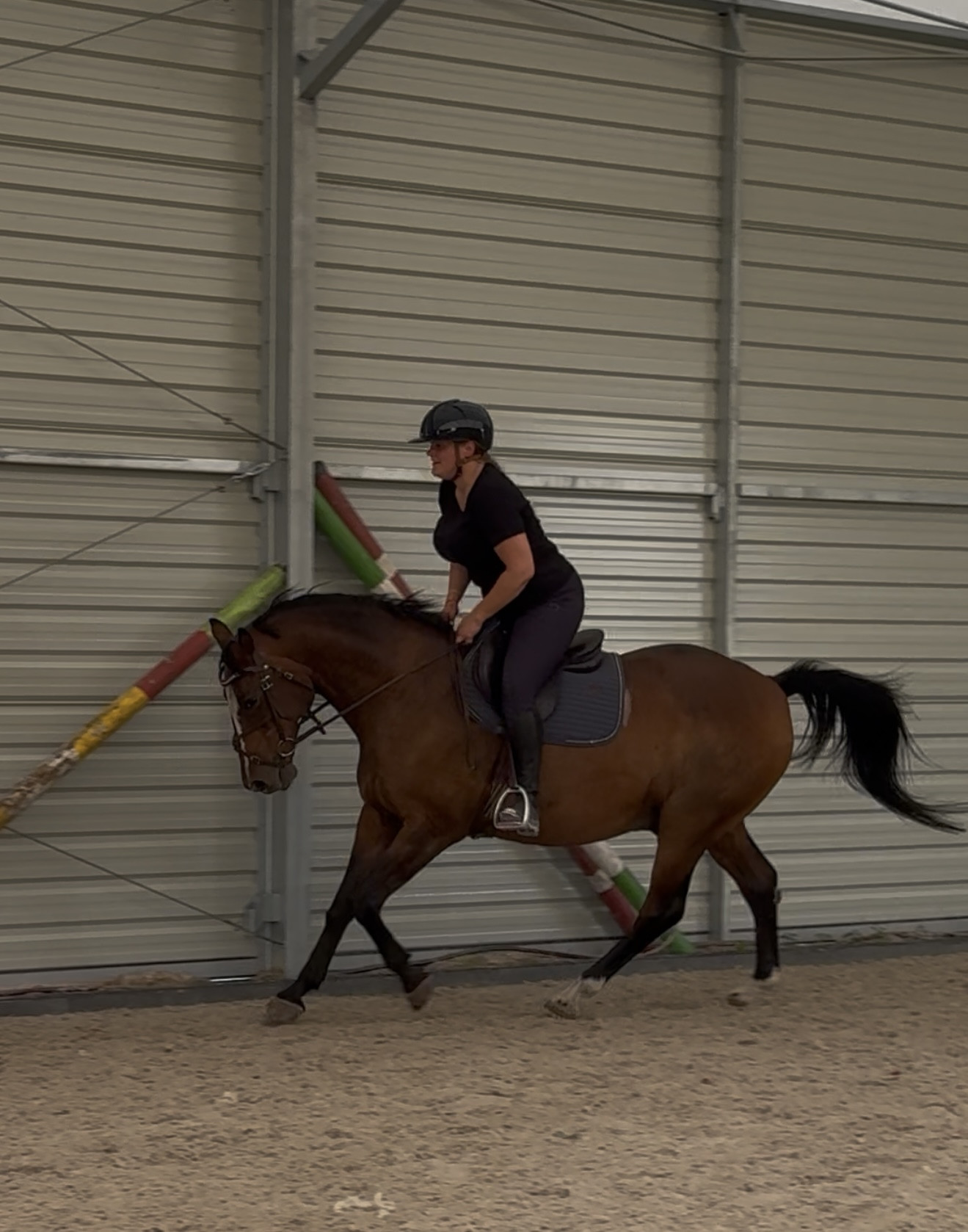 Chodzi pod siodłem 4-6 razy w tygodniu, taka ambitna rekreacja z zacięciem ujeżdżeniowym😎