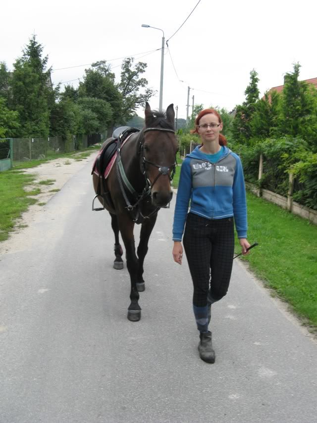 Kiedy zaczęłam na niej jeździć miała 17 lat, teraz ma 23 i niestety nie wiem, co się z nią dzieje. Dodam, że została kupiona za śmieszne pieniądze od jakiegoś "rylnika", u którego stała na półmetrowym gnoju i pomimo zaawansowanej ciąży (10 miesiąc) wyglądała jak szkielet. 🤔 Po kilku miesiącach wyglądała już tak jak na zdjęciu powyżej; ot, jak niewiele było potrzeba - dobrego owsa i odrobiny miłości. Niestety po dwóch latach przytrafił się bardzo poważny ochwat i nagle wesoły koń, który codziennie chodził pod siodłem mógł chodzić tylko na krótkie spacery w ręku. Przeżyła to strasznie, jak dla mnie było to takie końskie załamanie nerwowe; potem już nigdy nie była taka sama, straciła całą radość i chęć do życia. Dało mi to dodatkową przestrogę w kwestii postępowania ze starymi końmi: najgorsze dla takiego regularnie pracującego staruszka jest całkowite odstawienie od roboty, wypuszczenie na łąkę, co by sobie tam dożywał ostatnich dni. Taki koń czuje się niepotrzebny, a widziałam na własne oczy i nie ma nic smutniejszego od zdrowego, silnego zwierzęcia, które straciło wolę życia.