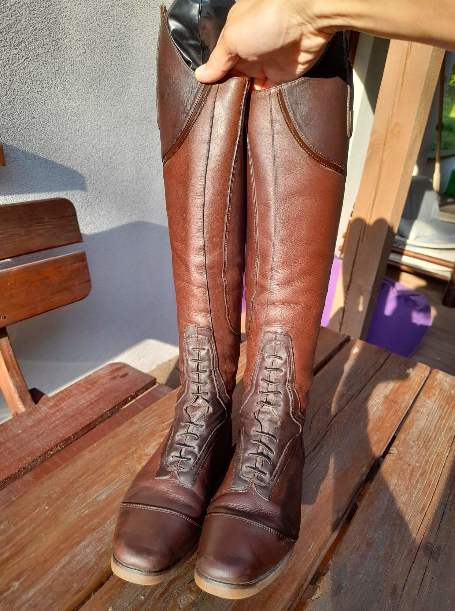 Słuchajcie przychodzę się pochwalić 🙃😁 Zupelnie przypadkiem wpadłam na ogłoszenie i kupiłam sobie dugą parę oficerek. Nie to żebym potrzebowała, bo mam w zapasie sztyblety i czapsy, no ale 😉 Dorwałam Mountain Horse Soveregin https://dobry-kon.pl/mountain-horse-oficerki-sovereign-high-rider-96124.html w bardzo fajnym stanie za całe 150 zł 😁 z prawidłami dmuchanymi w komplecie. Mogłyby być z 1,5 cm wyższe i nieco węższe, ale za taką kwotę to absolutnie nie będę narzekać! Na jesień, na grubsze bryczesy będą jak znalazł 🙃