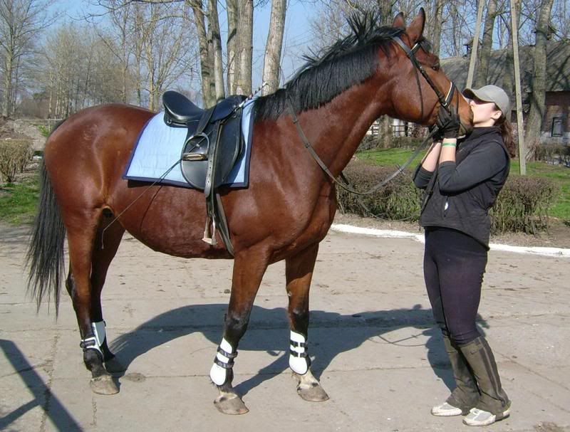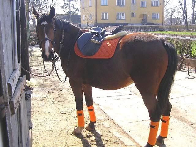 Efekt - ostatnio skrajnie spokojny koń. Aż się martwiłam czy wszystko z nią w porządku. Na szczęście na jeździe było wszystko ok- e humor i energia jej dopisywały, a w międzyczasie pogoniła groźną miną kumpla stajennego. Jak ja kocham tego zwierza, choć czasem go nie rozumiem zupełnie (nie wydaje mi się, że tak wielka zmiana jest od jedzenia. A inne czynniki trudno znaleźć - bo może to być mieszanka prawie wszystkiego).