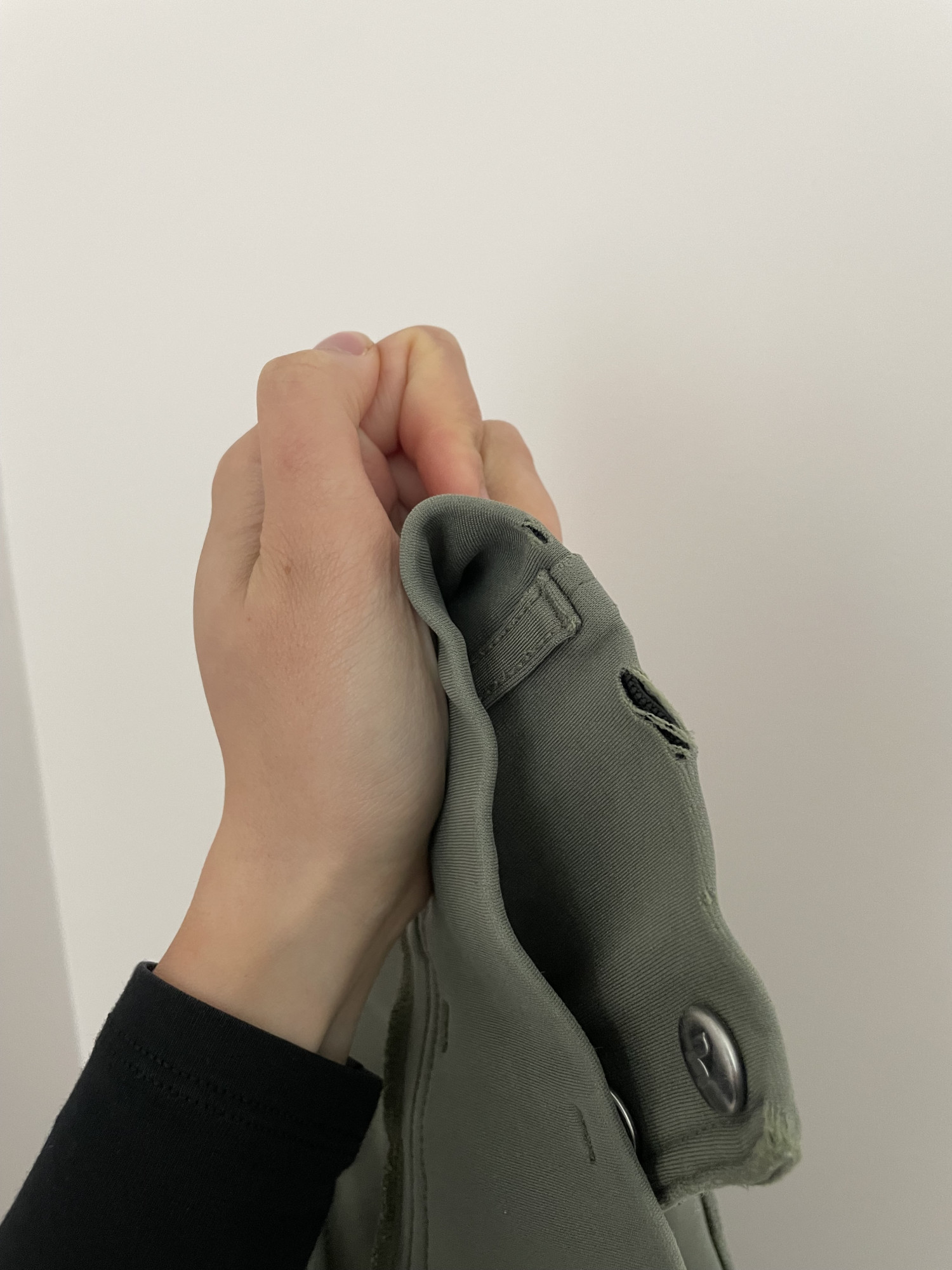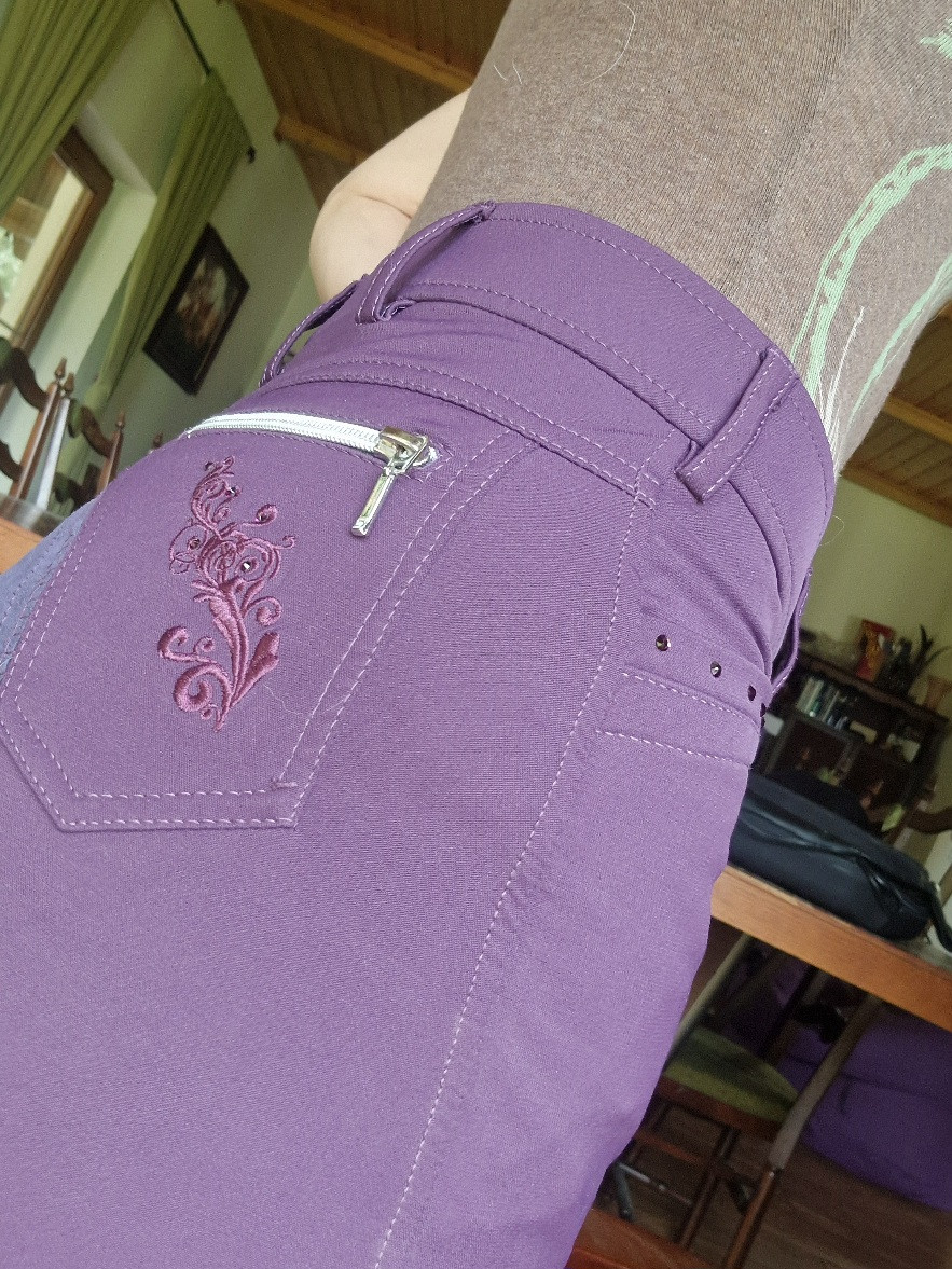 kotbury, nie są od środka, tylko jestem leniwa i są dalej wywinięte po praniu na lewą stronę 😆jeździłam w nich cały czas i nic się nie działo, jeździłam w kamizelce na bluzie, też nic. Pierwsze użycie na koszulkę w spodniach i coś takiego. Jak będę w weekend z kimś w stajni to poproszę by mi zrobili zdjęcie w tych zielonych + bluzka w spodniach z kamizelką. Bo mam tylko na koniu, a to pewnie ciężko ocenić.
