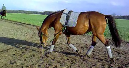 I tutaj pojawia się trudność pracy z młodymi końmi, u których kontakt trzeba dopiero wypracować - a wiadomo, że od samego początku dla dobra ich muskulatury powinno się je pracować w dole. Ja to rozwiązałam lonżowaniem: chociaż nie wykluczam, że tylko moja jeździecka indolencja nie pozwoliła mi tego przepracować w siodle.