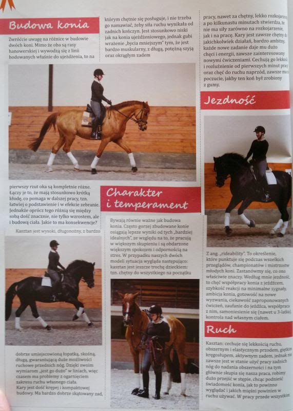 Ja bym chętnie o zaprzęgach poczytała (zawsze chciałam spróbować powozić, chociaż małą bryczką kawałek 😁 ), tak samo o WKKW o którym wiem w sumie baaardzo niewiele, nawet nie wiem jak się punkty liczy np. na crossie 😡 Kiedyś miałam prenumeratę ŚK i się zaczytywałam ale odkąd mi się skończyła to jakoś nie czuję parcia żeby kupować, czasem przejrzę w empiku, lubię ogłoszenia o sprzedaży koni (można sobie pomarzyć że kiedyś konia kupię) a tego np. w Gallopie nie ma. Sam Gallop może i ma całkiem ładną oprawę ale jakoś dużo z niego nie wynoszę więc też raczej kupować nie będę.