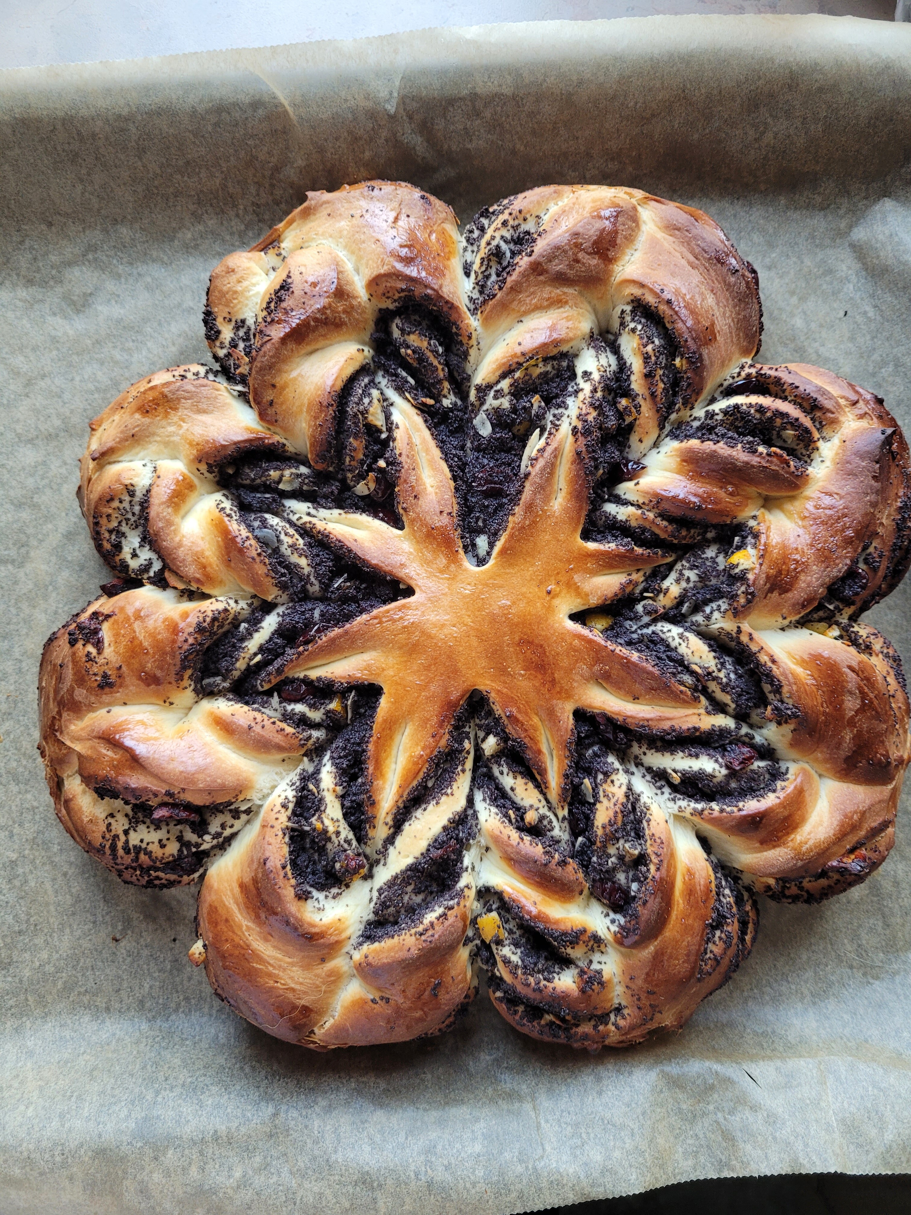 Makowiec japoński by rozkoszny (zapomniałam dodać proszku do pieczenia, ale wyrósł), pomarańczowe ciasto też by rozkoszny i gwiazda makowa z domową masą makową (tu zapomniałam jajek)