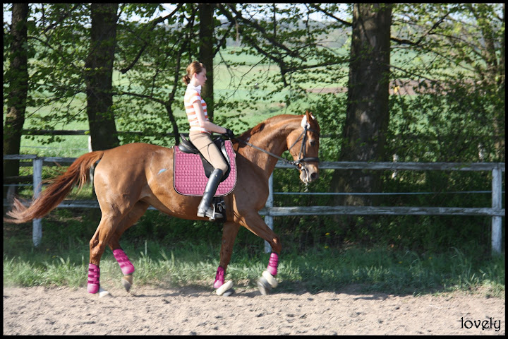 Ja pojechałam dziś do Tundry (bo nie miałam czasu żeby jechać do Oksera). Chciałam zobaczyć czy jest tam może ten eskadron, ale jak zobaczyłam te HKM'y to stwierdziłam że one też są śliczne. Siedziałam chyba dobre 10min rozmyślając nad kolorem, miałam dylemat między żółtym, zielonym i błękitnym. Wyszłam... z żółtym. A w najbliższym czasie kupię albo zielonego HKm'a albo inny podobnego koloru czaprak. Ten buraczkowy ładnie