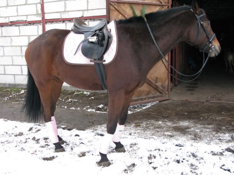 Szyszka to czaprak za 20zł z Allegro (chyba nawet są teraz wystawione 😉 ), uwielbiam go za tą cenę 👍 a owijki Waldhousen (tak to się pisze?). Jakościowo fajne ale na małe Libelkowe nóżki musiałam przyciąć rzepy bo były za długie