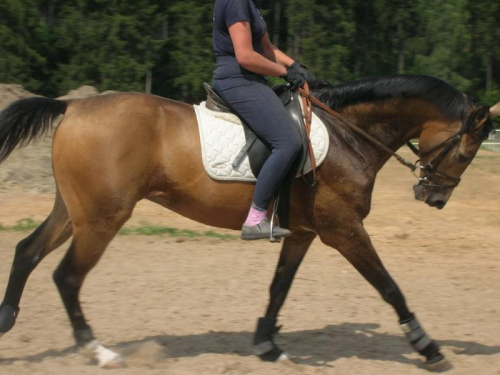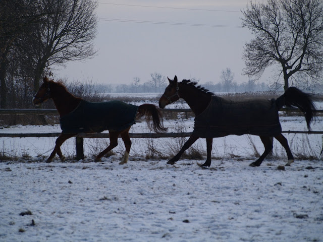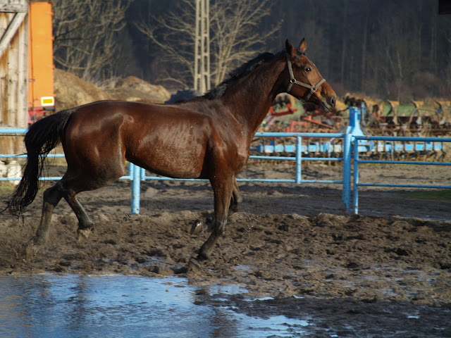 Najśmieszniejsze jest to, że jak jeżdżę na tym "trudniejszym" koniu w "mojej" dwukoniowej stawce, to zwykle nie mam syndromu rozhuśtania. Na tym lepiej jeżdżącym i ogólnie milszym do jazdy- aż czasem boję się wsiadać zastanawiając się, co dzisiaj moje ciało sobie wymyśli.