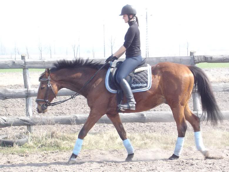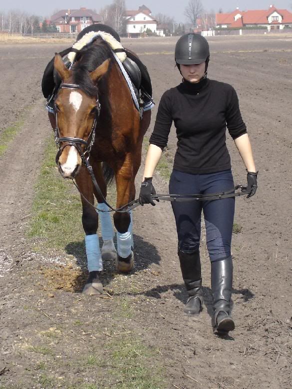 sznurka, no niestety, zwyrodnienia stawów, szczególnie skokowych. Koń zajeżdżony w wieku 2 lat - ciężka dwuletnia praca w szkółce i tyle. Są z nim niezłe cyrki kilka razy w roku bo część stawu z najbardziej zaawansowanym szpatem jeszcze się cała nie zalała, stąd zanik mięśni grzbietu i zadu. Za to brzucholek mamy 😉 Rewirrros jest moim młodym emerytem, któremu powierzyłam dwa trudne zadania - duuuzo jeść i hasać po łąkach do końca, mam nadzieję długiego i bezbolesnego, życia.
