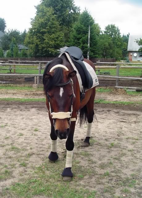 Drugiego konia szukałam ok. 165 w kłębie, no a trafiła się Sarka, która ma sporo poniżej 160. I jeździ mi się idealnie. Fakt, dopadają mnie ataki śmiechu jak ją czyszczę i siodłam - Łosiowi dociągam popręg na wysokości mojego brzucha, a żeby wyczyścić Sarze pod popręgiem, muszę kucać 🤣