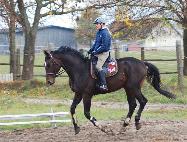 Jak już kiedyś pisałam, wielkoludy uwielbiam. Mój pierwszy koń miał 160 w kłębie i uważałam, że jest mały. Łoś ma 172 i coś ok. 750 kilo żywej wagi, co przy moim 163 cm x 52 kilo daje sporą dysproporcję. Uwielbiam to, że wyglądam na nim jak mrówka na słoniu, no ALE. On słoniowy jest też w jeździe, ciężki, do tego fizol taki.