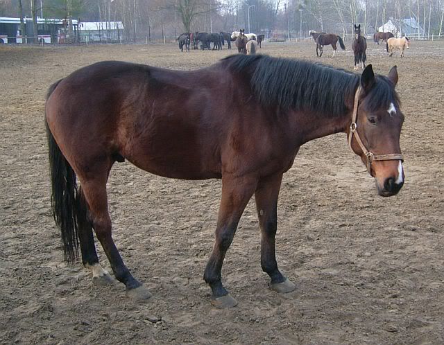 I nerwus - Kontakt :P koń fajny do jazdy, ale w obejściu okropny z niego drań :P (też już kiedyś o nim pisałam 😉 ). w tle reszta naszego stadka.