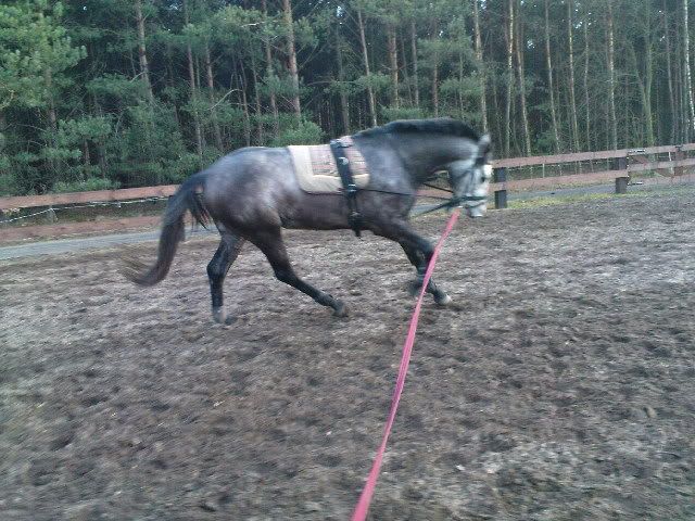 W ogóle po wyjściu ze stajni i na jeździe troche pokasływała, ale to raczej wina zimnego powietrza. Mam na jednym filmiku nagrane nawet jak kaszle, ale nie umiem wyciąć fragmentu filmu, a to filmik jak kumpela jeździła, więc nie sądze, żeby się cieszyła gdybym cały wystawiła ;P
