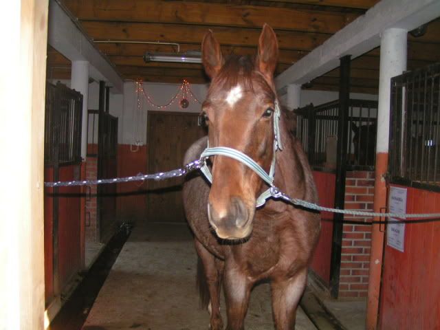 Wczoraj właściciel stajni, w której trzymam moją Rudą kupił śliczną kucke. Maja ma 9 lat i nie dość że jest urocza to bardzo kochana. Ale doprowadzenie jej do czystości zajeło mi przeszło 2 godziny zeszła mi prz tym buteka szamponu i chyba z 10 wiader wody moje biedne ręce. Kobyłka miała na sobie gnojne łuski na obu udach i całym brzuchu i ogon to byłą jedna wielka gnojno błotna sklejka ale teraz wygląda jak cukiereczek. Teraz musze dla małej zakupić jakiś fajny komplecik czpraczek i ochraniaczki tylko nad kolorem się zastanawiam 🙂 U nas dzisiaj przymroziło więc wszędzie straszna gruda i z kolegą wybraliśmy się na spacerek nad jeziorko.