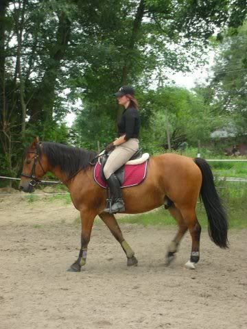 Ale śmiechu w terenie było coniemiara. Moje przekłusowanie chyba z 15-20 metrów widząc na boku konia (rękami na szyji, nogą na grzbiecie =P) powaliło koleżanke na kolana, za to, jak ona wsiadała na swoją z powalonego drzewa, zrobiła prawie szpagat, gdy jej kobyłka zwiewała jej z pod tyłka =P zawiesiła się na drzewie obok a koń sobie od niej odkłusował to ja najpierw się przeraziłam, żeby złapać jej konia a później przez kilka minut nie mogłam uspokoić śmiechu =P