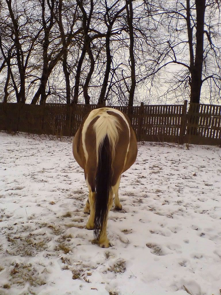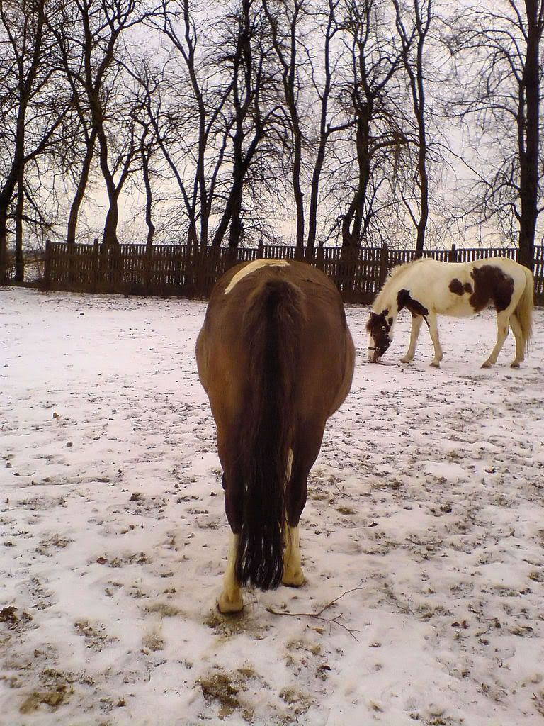W stajni jestem 4 razy w tygodniu (chyba, że w pracy mam młyn, ale to głównie okres wiosenny). To znaczy 4 dni jestem tak na dłużej, żeby pracować z końmi. A kilka razy w tygodniu jestem też na chwilę rano, żeby wypuścić dziewczyny na wybieg (bo niestety czegoś takiego jak wypuszczanie koni nasza a'la obsługa stajenne nie robi).