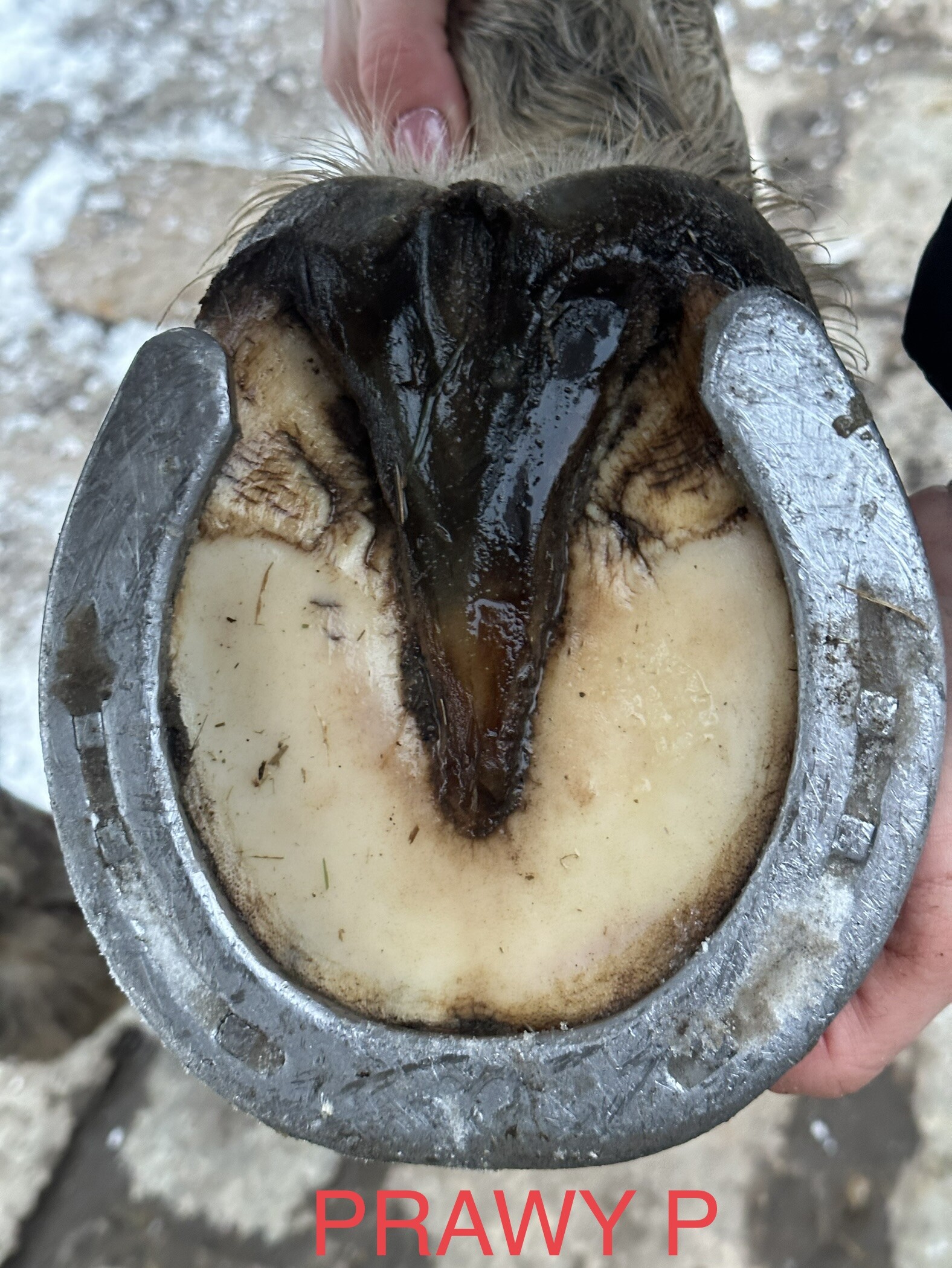 kotbury, koń miał super kopyta szersze niż dłuższe dobrze skątowane. Po podbiciu i być może po jakimś syndromie metabolicznym zaczął mu pazur wyjeżdżać do przodu, opadła kość kopytowa, kąt dłoniowy zero. Dlatego walczymy o skrócenie pazura i podniesienie kątów, ale nie jest łatwo, bo kowal ma ponad 70 lat, a koń jest ciężki i się buja. I nie bardzo widzę u nas alternatywę dla kowala, ale wiem, że zmiany są niestety nieuchronne.