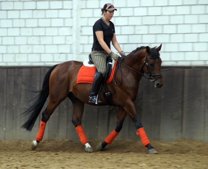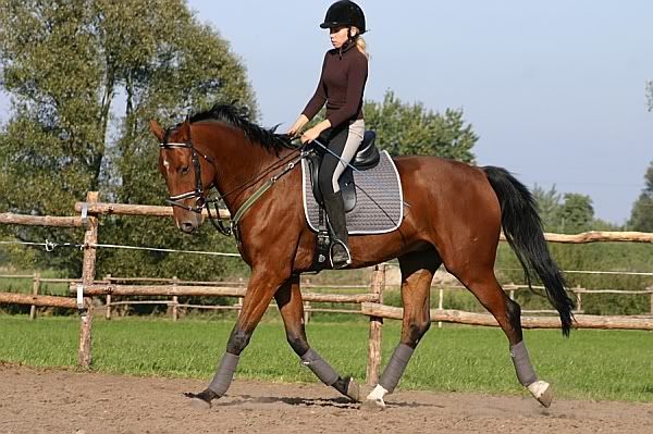 Ja się do tego siodła już ujeździłam i teraz siedzi mi się na nim fajnie, ale pierwsze wrażenie dotyczyło faktycznie półtwardości (a ja z tych, co wolą poduchę pod tyłkiem), bardziej płaskiego niż do tej pory jeździłam siedziska i całego zestawu, który nie trzyma zupełnie jeźdźca.